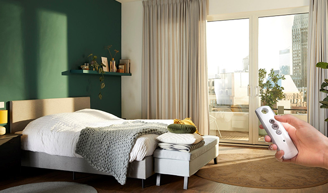 Perdeyi açıp kapatmayı uzaktan sağlar, kullanım kolaylığı sunar.